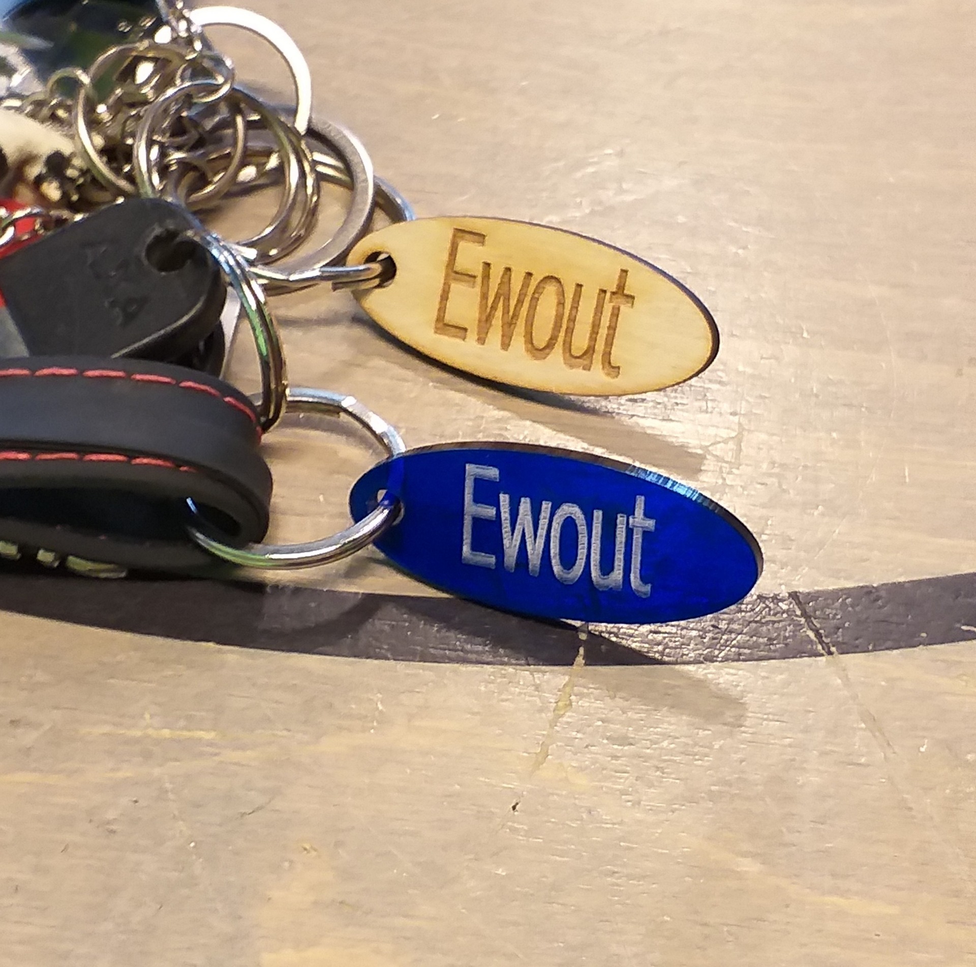Bij lasercutten moest je een sleutelhanger maken. Bij de lasercutter staat een laptop, met daarop een programma voor de lasercutter. Er staat een ovaal op het scherm en daarop kan je dingen schrijven, zoals je naam of een ander woord. Als je er wat in hebt geschreven, moet je dat downloaden op de lasercutter. Dan moet je onder de cutter een plaat leggen waarop hij je sleutelhanger gaat maken. Die plaat mag van plastic of hout zijn. als hij er goed onder ligt doe je de klep dicht, druk je op frame, dan op original en dan op start. Dan begint hij aan de sleutelhanger. Na ongeveer 15 seconden is hij klaar.